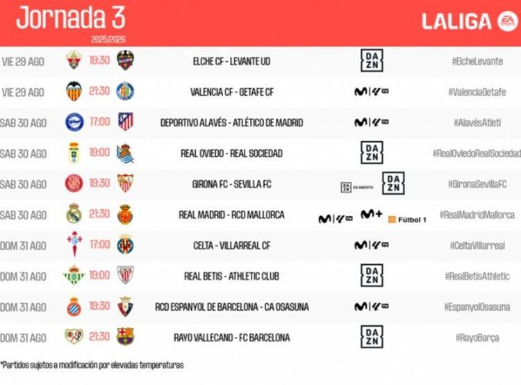 西甲第3轮赛程:皇马8月31日3:30出战 巴萨9月1日3:30出战